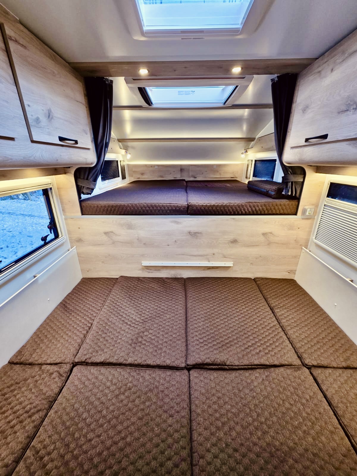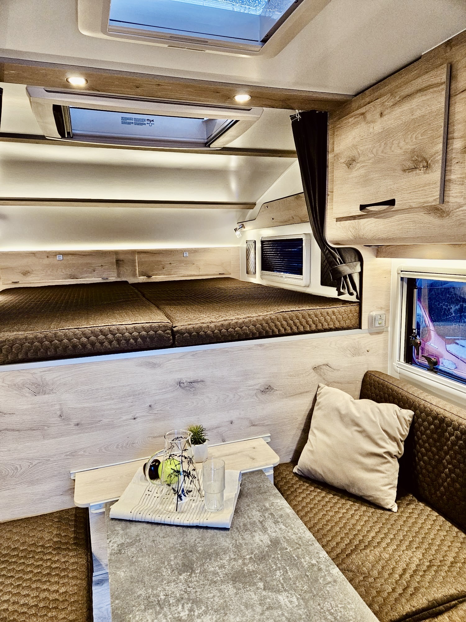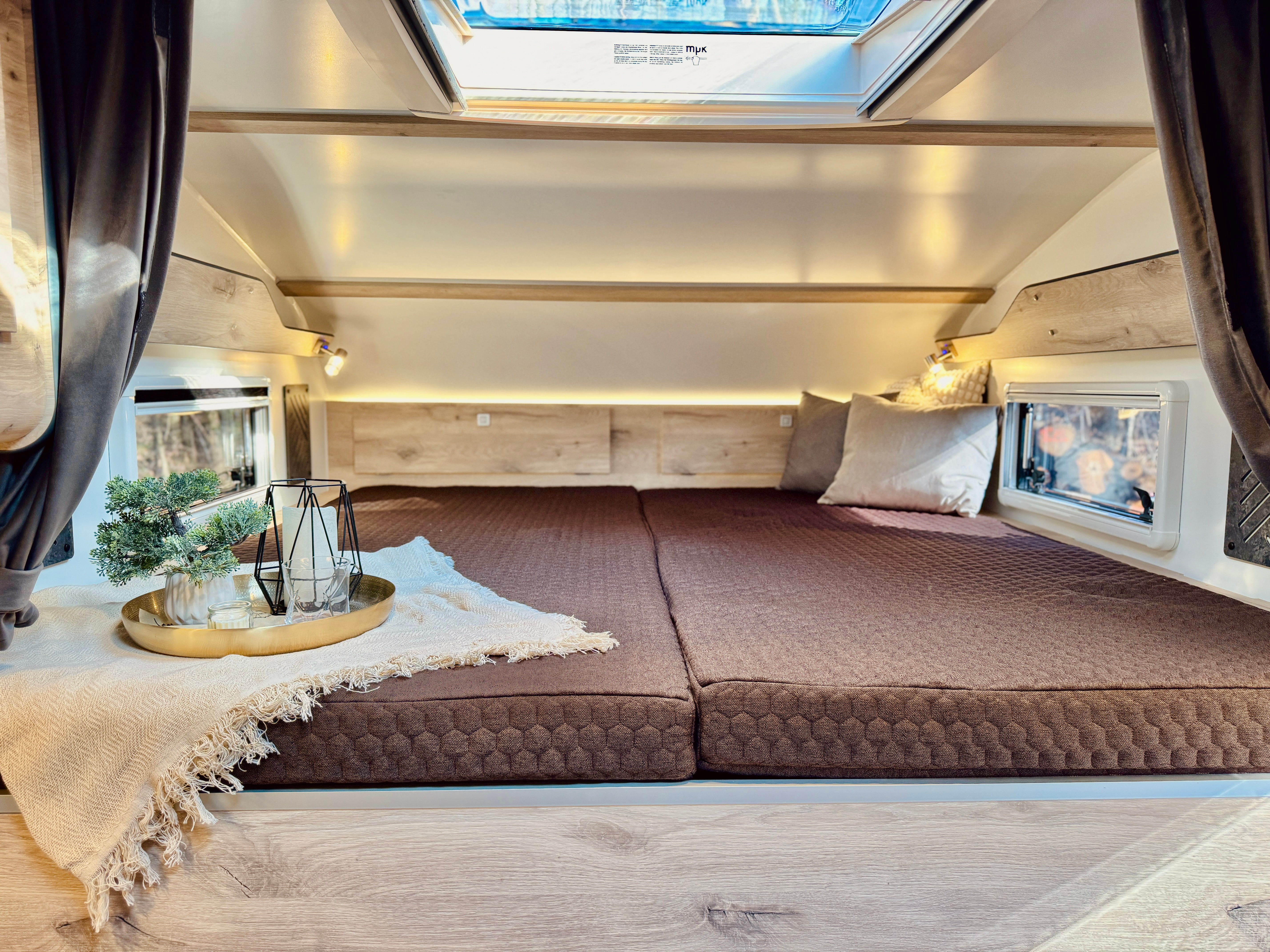 - 2 Seitenfenster im Wohnbereich mit Seitenfenster im Schlafbereich mit Kombirollos