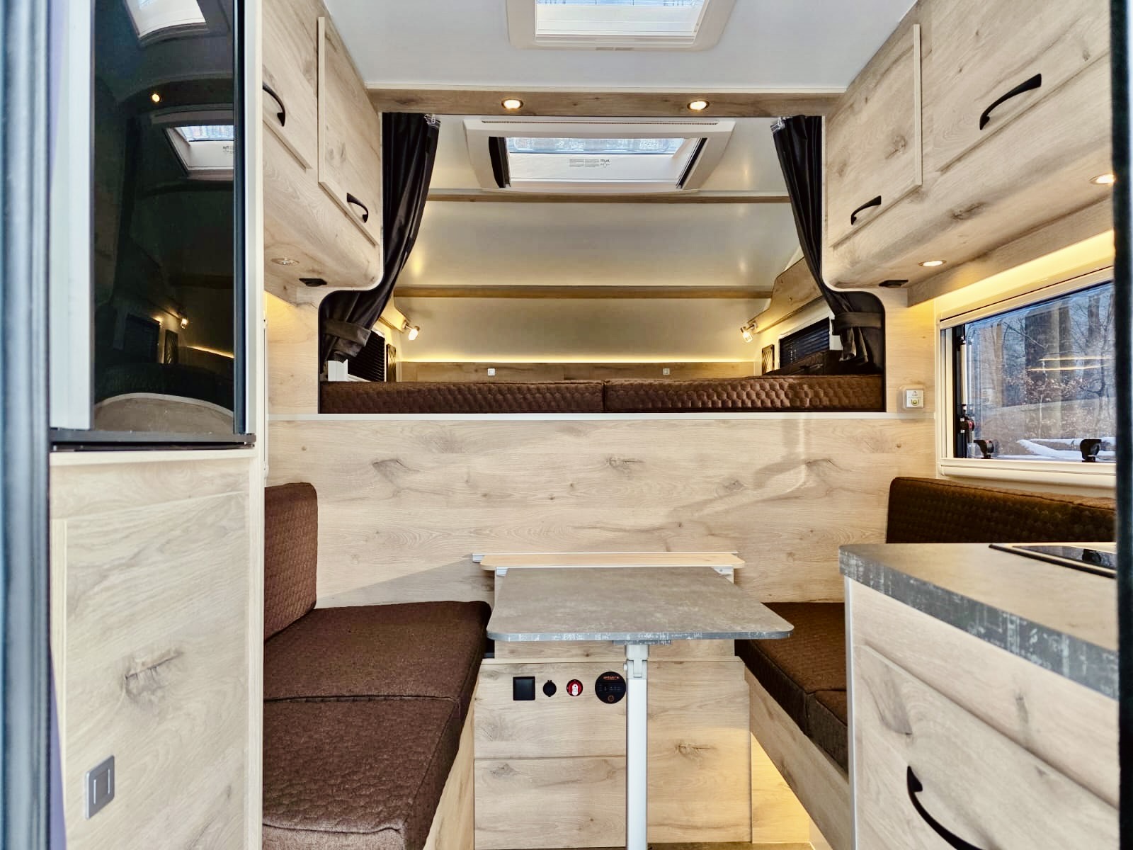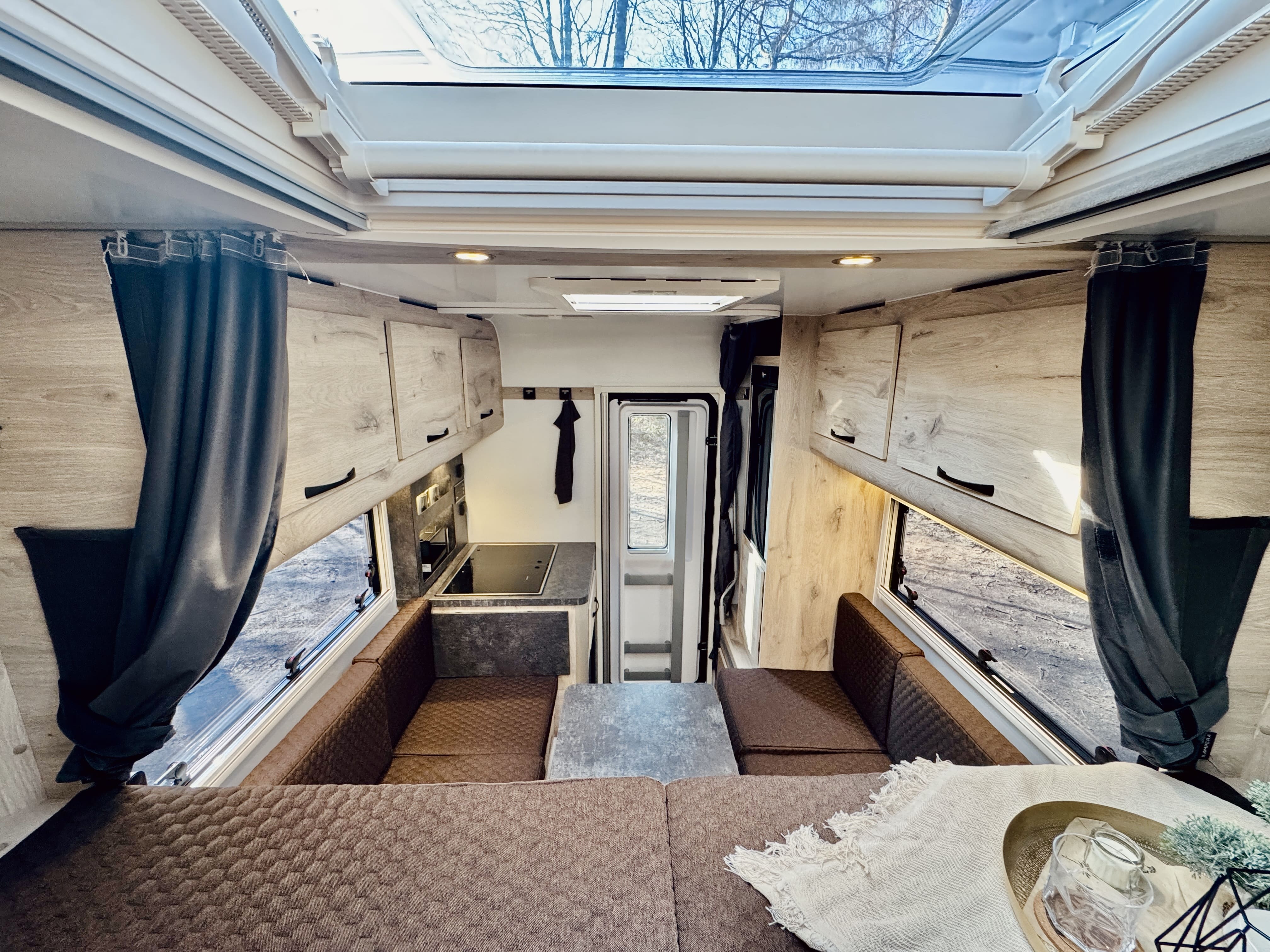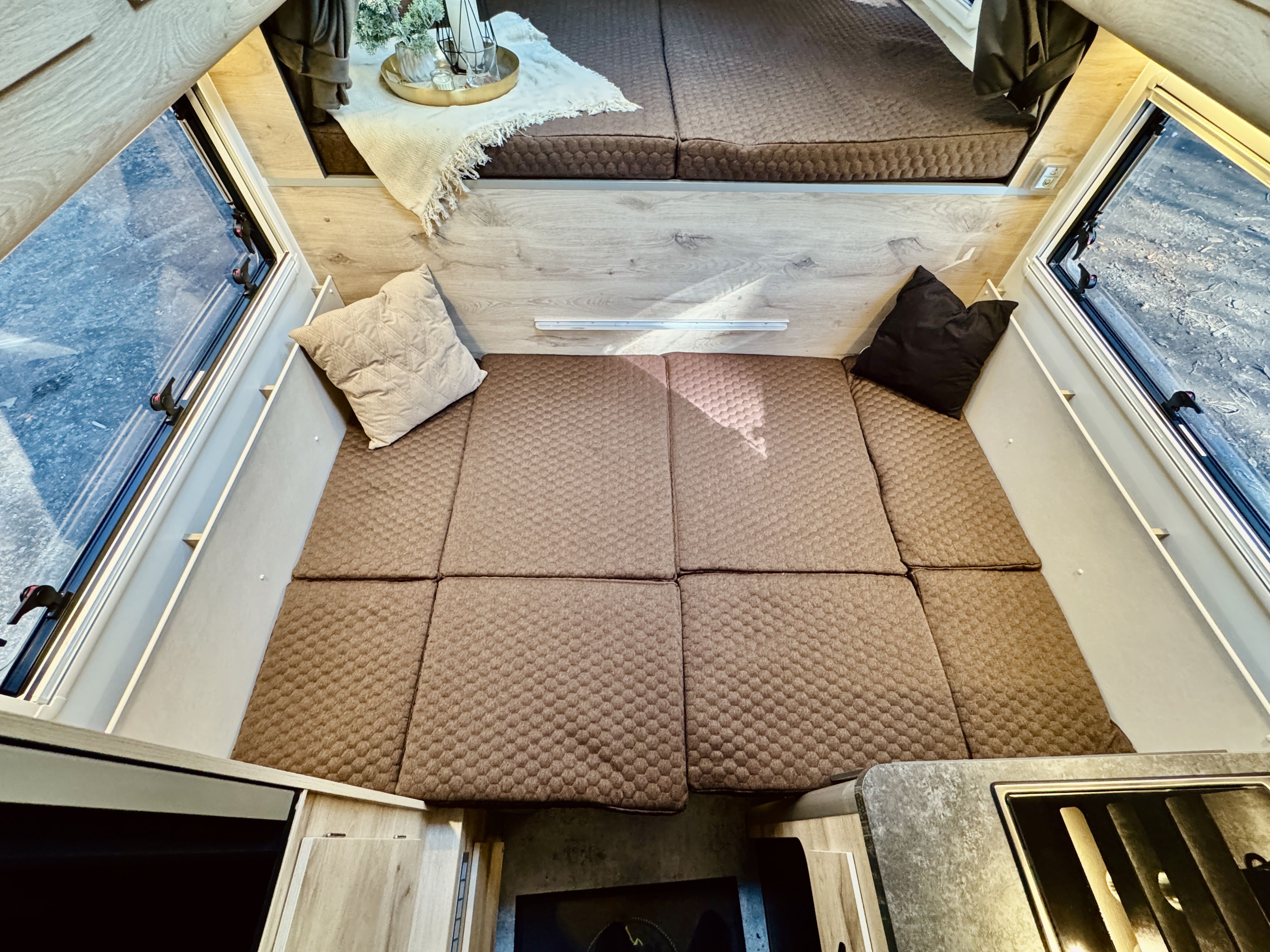 - 2 Seitenfenster im Wohnbereich mit Seitenfenster im Schlafbereich mit Kombirollos